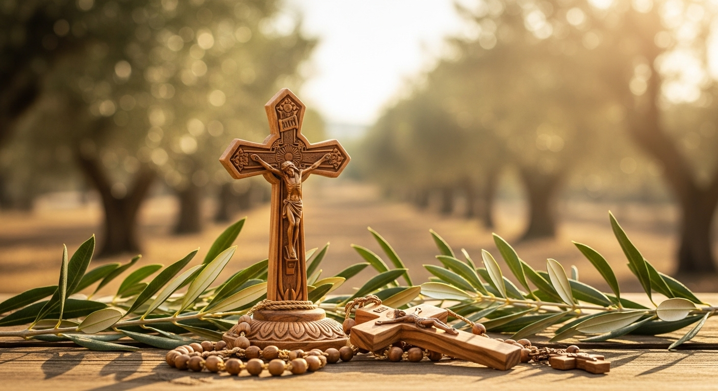 Rezar com um terço ou ter um crucifixo de oliveira da Terra Santa é diferente. Ele guarda a memória do solo de Cristo. É unir sua oração à fé que brotou no lugar do Evangelho, trazendo uma bênção e uma proteção especiais para você e sua família.